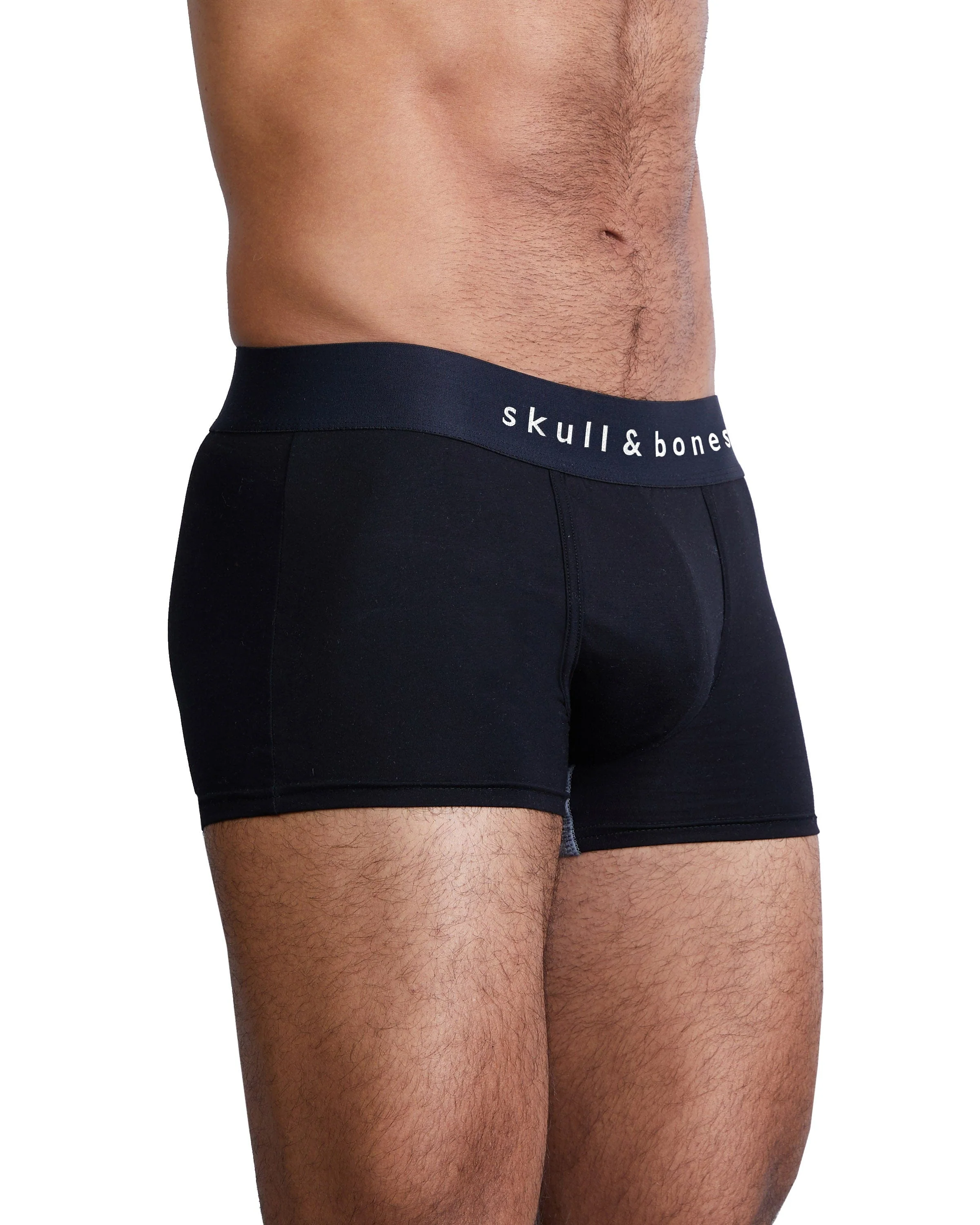 The Skull & Bones trunk silhouette features a contour pouch with a double fabric layer gusset for ultimate comfort & support, a new “no-roll” waistband, and flatlock stitching throughout for stretchability and uninhibited movement. With our signature logo patch on the back waistband.